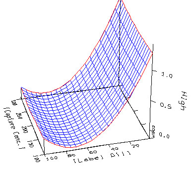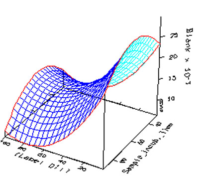 As part of my research, I also performed several experiments that involved optimization of an ELISA (Enzyme Linked Immunosorbent Assay). This ELISA was to geared to measure quantitatively cardiac Troponin I. The optimal fashion to perform experiments is to change several factors (variables) that affect an output (response) at the same time. Design of experiments is the use of multivariable regression to fit a mathematical model to experimental data that dictate different levels of a factor in combination with other factors. In this manner we are changing several variables in one experiment and looking for interactions with other variables. The mathematical models are diverse and a typical starting point is a linear screening experiments that measures the main or primary effects of the factors, The data below was generated with a response surface methodology (RSM) following a quadratic model that can fit nonlinear relationships and obviously find maximas and minimas. The experiments are performed in a random fashion and a set of conditions are repeated throughout to obtain information on the precision of the technique. The matrix or worksheet of conditions to run is sometimes too costly in time and money so other models such as fractional factorials can be used to obtain information on the effects. The less conditions tested the chances for confounding effects in the data generated, Typically a model that can discriminate first and second order interactions is sufficient for most scientists. Third order interactions are rare and are not as important as first and second order. The traditional approach in science has been to change one variable at a time and measure its effects. The design of experiments approach is to vary several important variables and see if the response obtained is actually non-linear. If you apply a linear model to a second order interaction you may potentially miss a maxima or minima because of the fitting routine. You also perform analysis of variance (ANOVA) to compare the different conditions. A high residuals may be indicative of a poor fitting routine (lack of fit) and may indicate the use of a second order model. Although there is great resistance to DOE in some sectors of the scientific community many times scientists who realize the importance and value of it will never again resort to single variable experiments, unless, the nature and cost of experimentation is prohibitive. The FDA is currently is requiring research groups in companies to follow design control techniques whereby scientists have to develop products and formulations by using experimental design to show the scientific reasoning behind a given formulation. The statistical basis for these experiments lends lots of credibility to the outcomes and conclusions. Not to mention that challenges to patents or formulations may be justified based on empirical data analyzed and predictive of a given formulation.