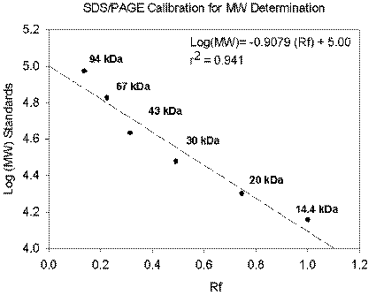 migration distance versus the log of the molecular weight of the standard